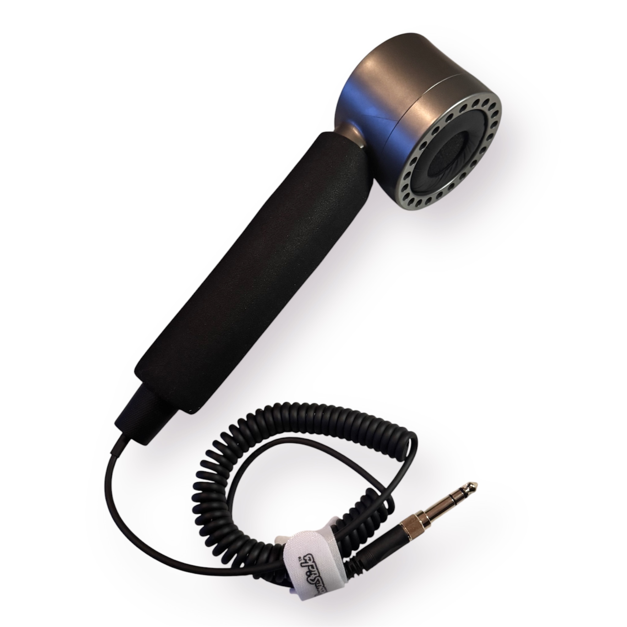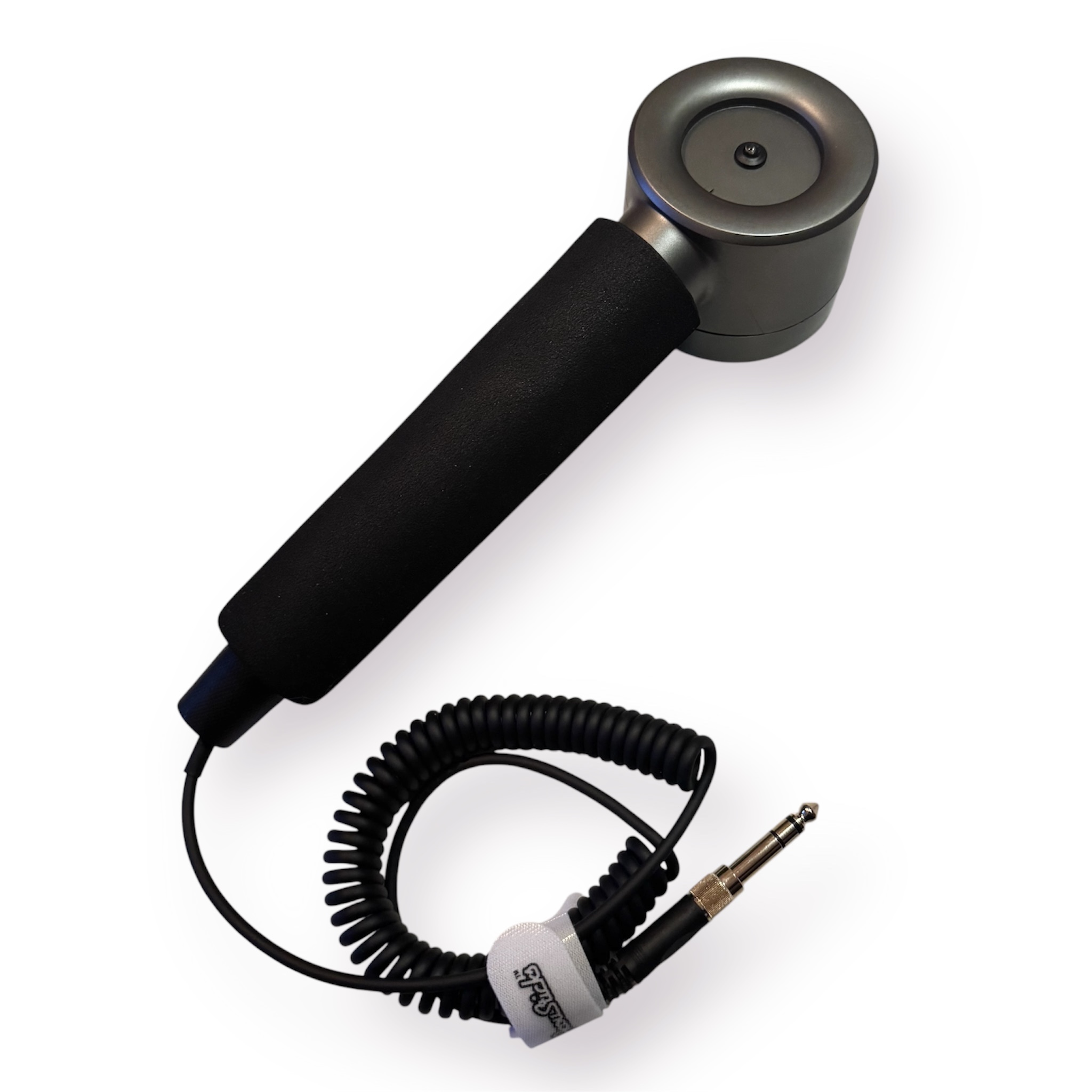 Coiled black cable